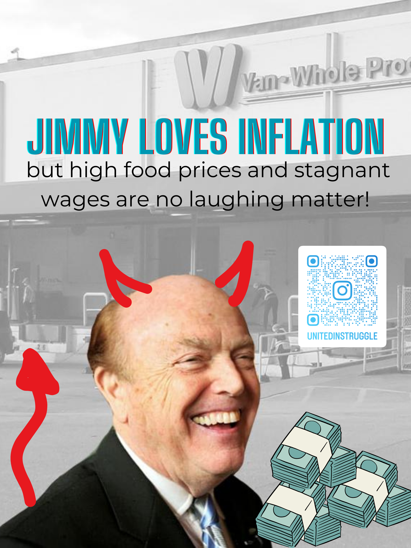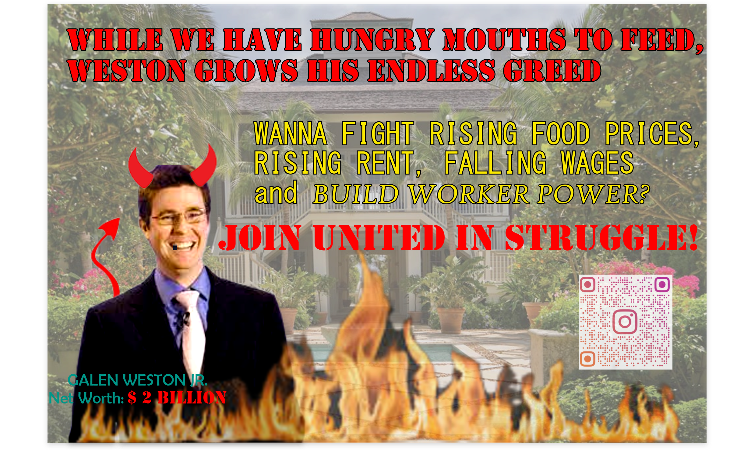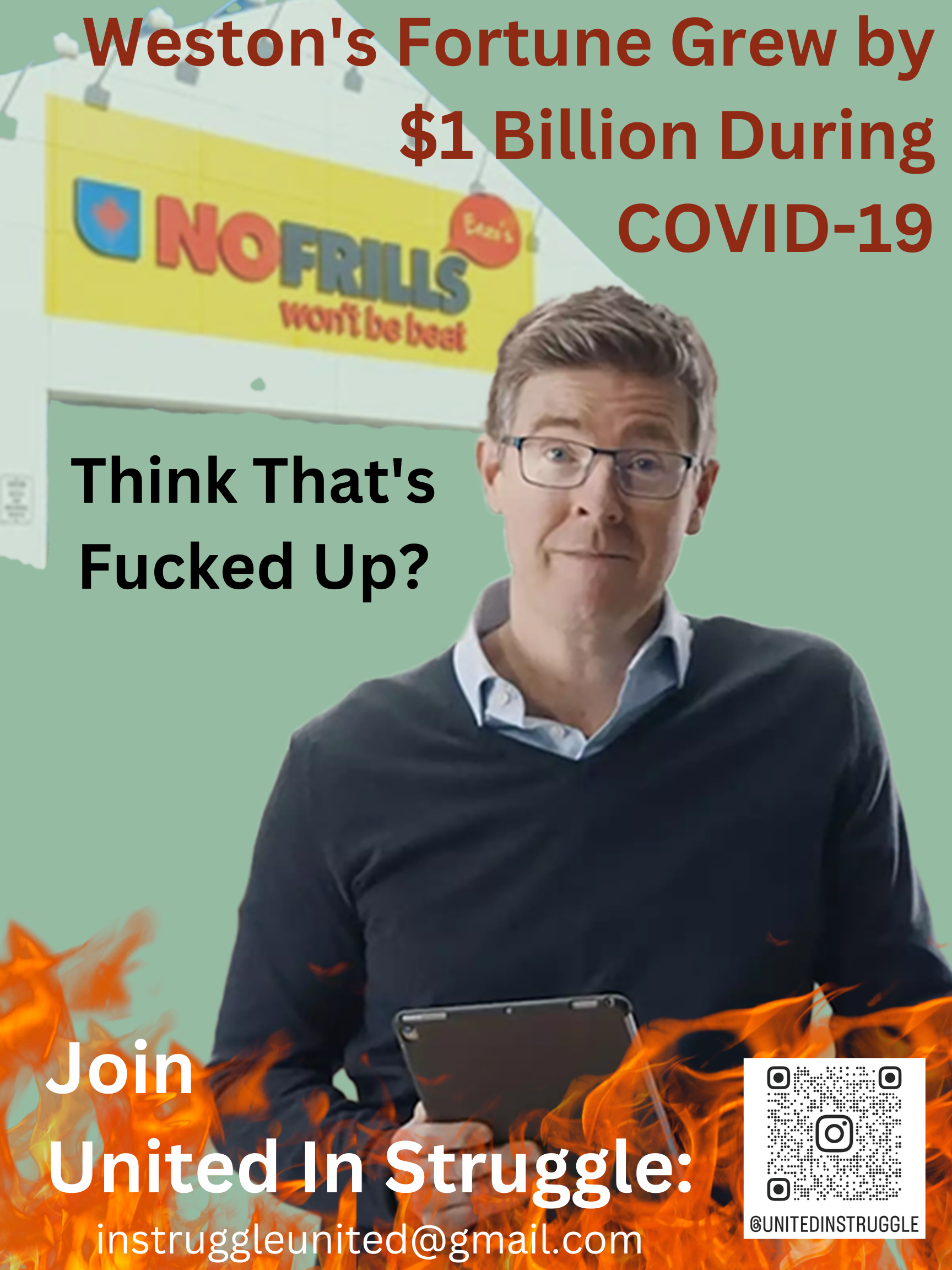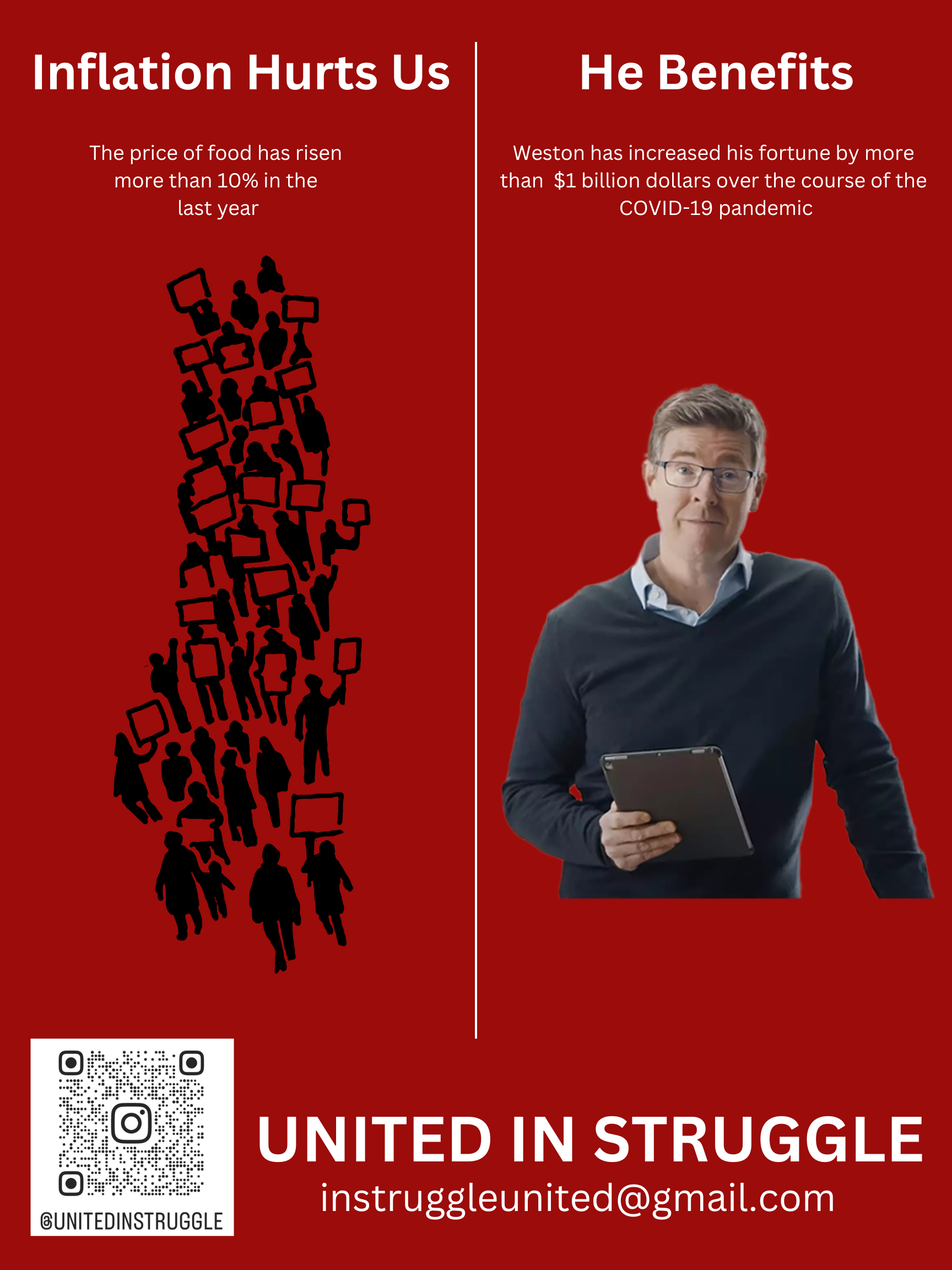 Shit pay and rising prices are leading to record profits for the barons of the food industry. Food inflation across Canada is at 10% and people can’t keep up with their growing grocery bills. Food workers create all of the profit for the big corporations, but are struggling to afford the products that they create.