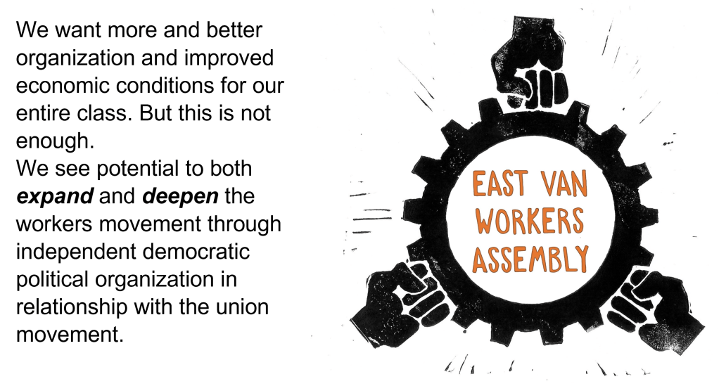 - A small but growing number of independent political workers organizations like the East Van Workers Assembly.