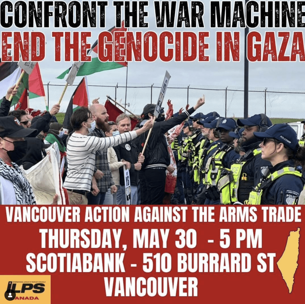 While weapons corporations like Lockheed Martin earned over 6 billion dollars in 2023, we are forced to dedicate a third of our life to companies, being exploited and discarded at a moment’s notice. We remember Yuridia Flores, a worker and mother of 2, killed on the job during a crane accident here in Vancouver, and we remember the 1000 workers that die on the job each year because our government cares more about corporate profits than peoples’ lives.