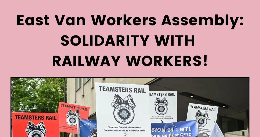 The East Van Workers Assembly (EVWA) is outraged by the federal government’s decision to impose binding arbitration on over 9,000 workers who have been locked out by Canadian National (CN) and Canadian Pacific (CPKC) Railways. In doing so, the Liberals have steamrolled over the legally protected collective bargaining rights of workers in Canada, potentially put … Continue reading Solidarity with Railway Workers