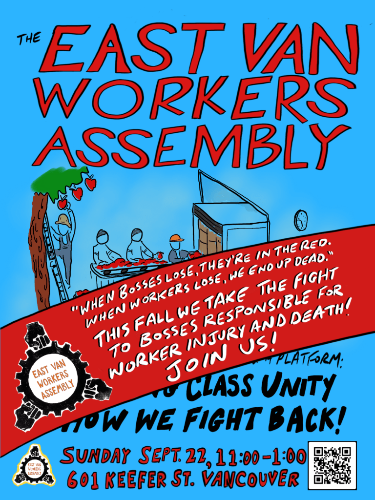 - Organize workers into the East Van Workers Assembly and encourage workers to organize in their workplaces.