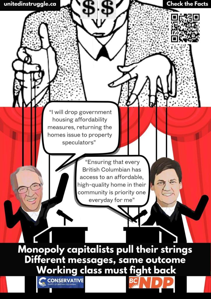 The government works hard to suggest that the cause of the housing crisis is anything but capitalist greed. Meaningless policies such as taxes on empty homes, foreign buyers, flipping properties, or limits on short term rentals mystify the real cause of the housing crisis. The problem isn’t that there are too many AirBnBs in Vancouver or too many homes sitting empty. The problem is that our homes are owned by a wealthy few, who rent them to us at exorbitant prices to extract as much profit as possible.