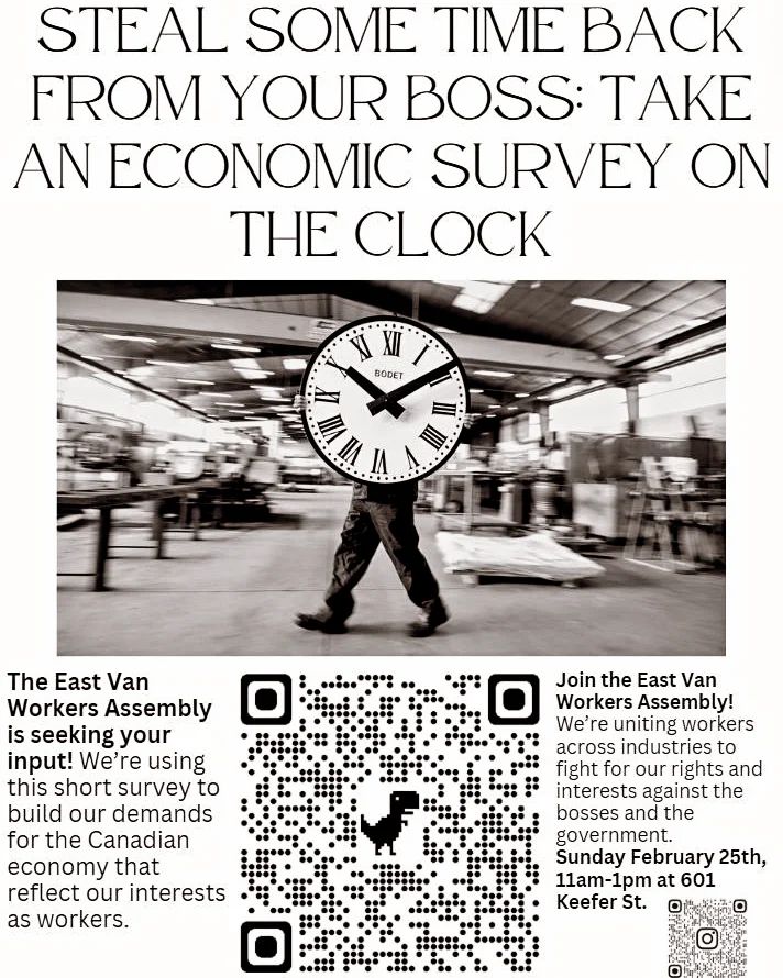 The Workers Platform Economic Survey is one way the East Van Workers Assembly is getting the experiences, challenges, and ideas of workers in order to build our draft political platform.